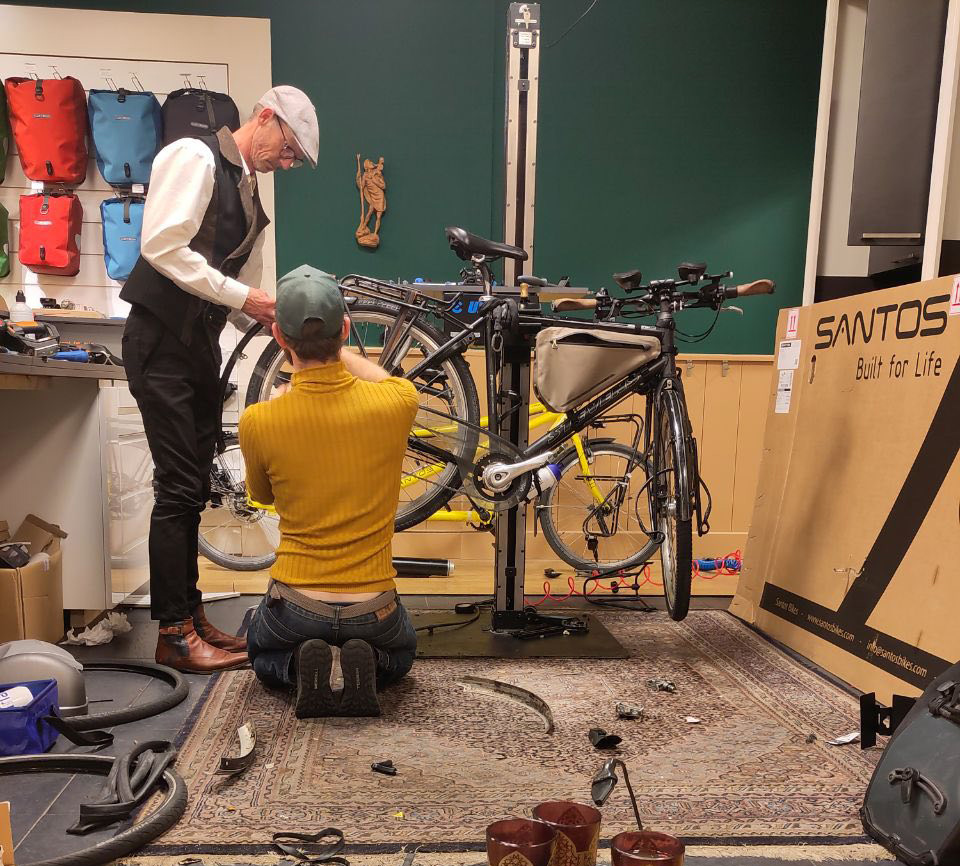 Toen Maud in 2021 het boek “Fulltime Avonturier” las vol fietsverhalen, was ze op slag verliefd op de avonturen in het boek. Dit wilde zij ook! Ze ging op zoek naar inspiratie en vond de mooiste speciaalzaak voor fietsen die voor het leven zijn. Ze ging langs bij de Saint Christopher Santos World Store en ontmoette de man die alles met fietsen kan – onze Michiel.