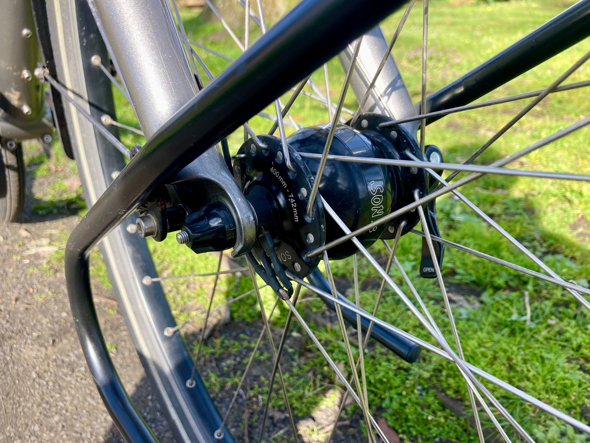 Zo’n hip type, een gravelbike. Jong, snel en allroad bandjes met bruine wangen. En een racestuur, want dat hoort tegenwoordig zo. De accountant keek ernaar, kneep even met zijn ogen en rekende opnieuw. Dezelfde filosofie: Santos, rohloff, tandriem. Maar dan in een joggingpak in plaats van een kantooroutfit. Meer kilometers per dag. Beter rendement per uur. En sociale vaardigheden die beter aansluiten bij het groepje racefietsen.
